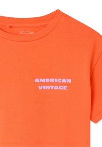 Narančasta pamučna majica kratkih rukava s okruglim izrezom. Na lijevoj strani prsa otisnut je bijeli natpis "AMERICAN VINTAGE".