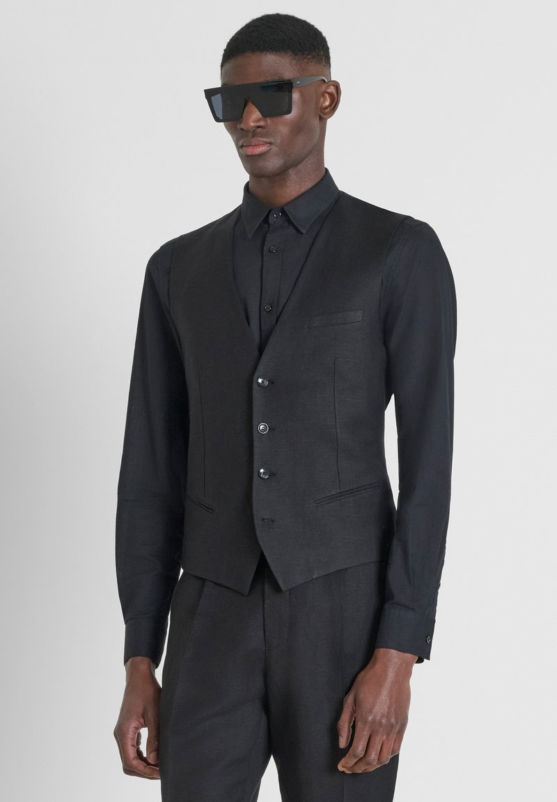 SLIM FIT - Strukirani kaput - black