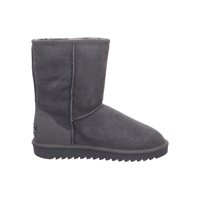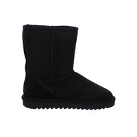Srednje visoka smeđa zimska čizma od antilopa s postavom od ovčje vune i debelim gumenim potplatom s urezanim uzorkom za bolje prianjanje.