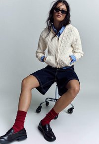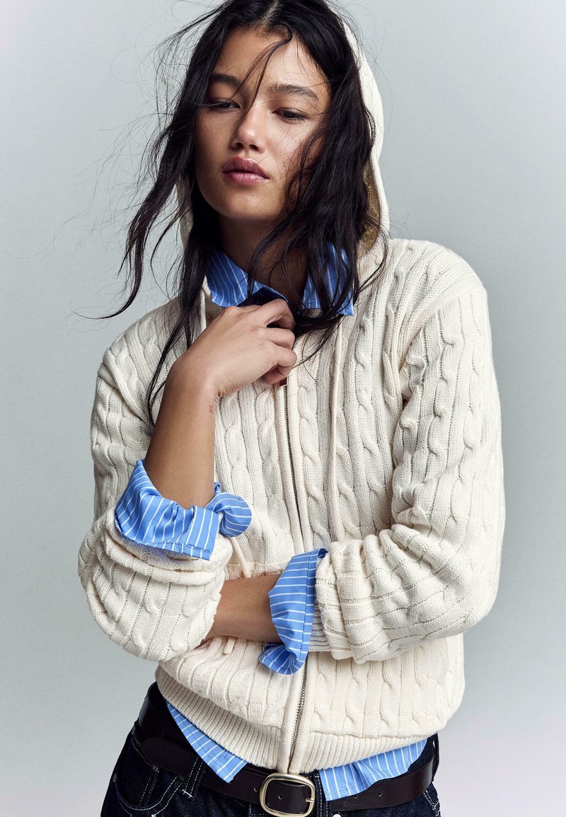 CABLE-KNIT - Majica s kapuljačom i patentnim zatvaračem - beige