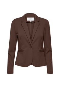 Tamnozelena blejzerica uskog kroja s jednim dugmetom i reverima. Nosi se preko bež rolke, koja ima glatku tkaninu i kroj po mjeri.
