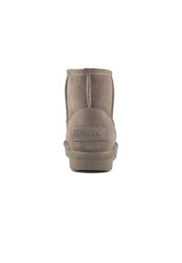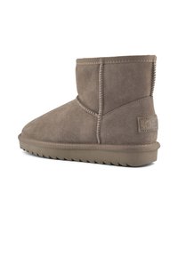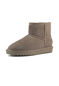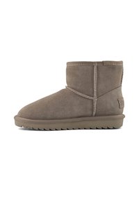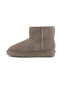 Kratka smeđa gležnjača od brušene kože s vidljivim šavovima i nazubljenim đonom, dizajnirana za svakodnevno ili hladno vrijeme.