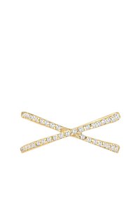 Moderan dizajn i elegantno svjetlucavi cirkonski kamenčići čine ovaj prsten zaista posebnim komadom nakita. Dvije pozlaćene trake od srebra 925 ukrašene cirkonskim kamenčićima – koje se križaju u sredini – prekrasno obavijaju prst stvarajući blistav izgled. Ovaj prsten je luksuzni klasik koji dodaje stil i eleganciju svakom outfitu. Bezvremenski must-have za ljubitelje mode!