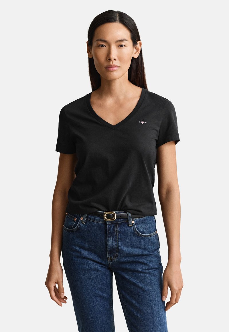 SHIELD V NECK - Osnovna majica kratkih rukava - black