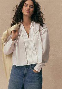 REGULAR FIT - TIE-NECK PINTUCK - Bluza - white
