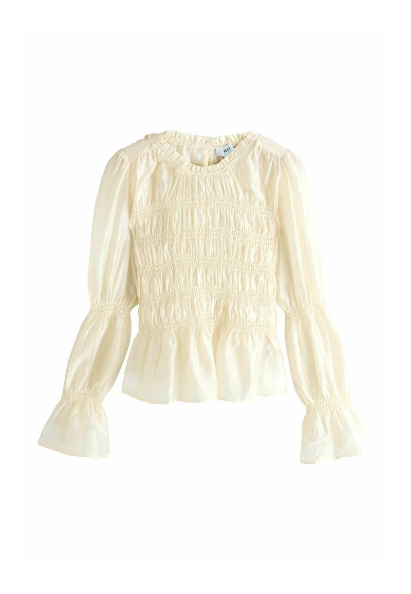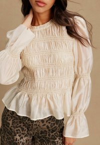 REGULAR FIT - SHEER SMOCKED LONG SLEEVE - Bluza - ecru