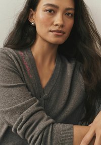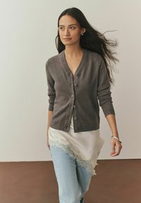 REGULAR FIT - V-NECK - Vesta na kopčanje - chocolate brown