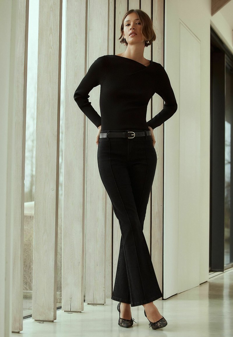 PETITE FIT - SEAMED MID RISE - Traperice krojene za nošenje s čizmama - black