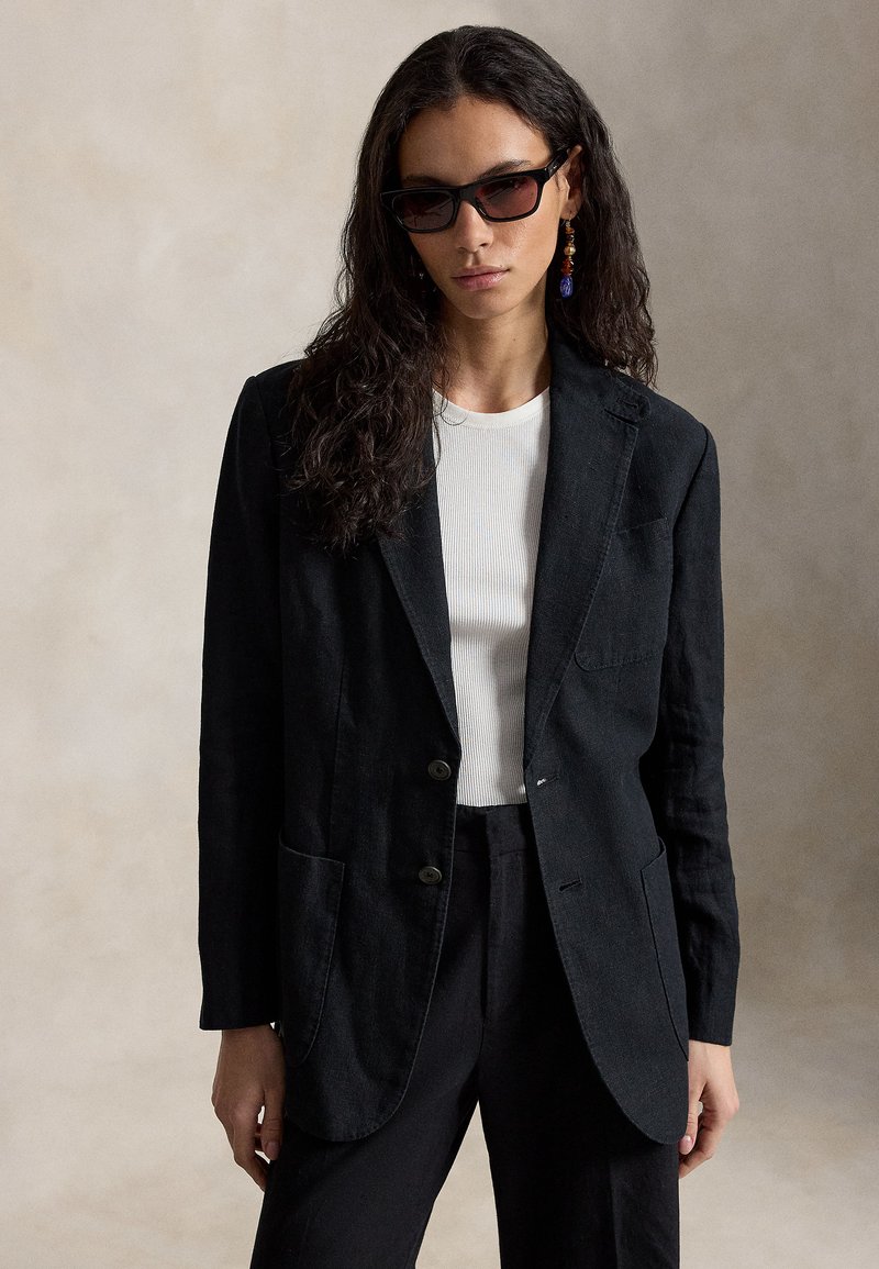 SINGLE-BREASTED LINEN JACKET - Kratka jakna - black
