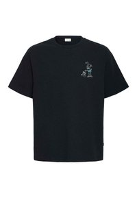 Kaki pamučna majica s kratkim rukavima i oversized krojem. Na poleđini se nalazi crna ilustracija osobe koja zalijeva biljke.