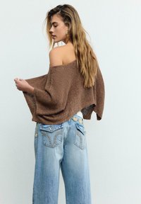 Novoheart_outlinedStradivariusSHORT SLEEVE BOAT NECK T-SHIRT WITH GATHERS 07055550 - Osnovna majica kratkih rukava - dark brown9,99 €