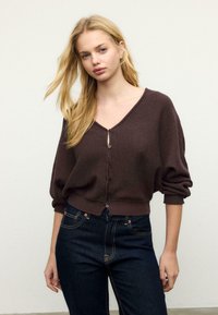BATWING SLEEVE - Vesta na kopčanje - dark brown