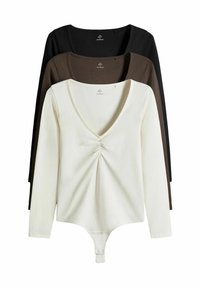3 PACK LONG SLEEVE RUCHED FRONT - Top dugih rukava - black/chocolate brown/cream