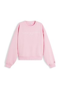 Crna dukserica od pamuka s krojenjem koje otkriva struk. Na prednjoj strani ima bijeli natpis "TOMMY HILFIGER EST. 1985" i pletene manšete.